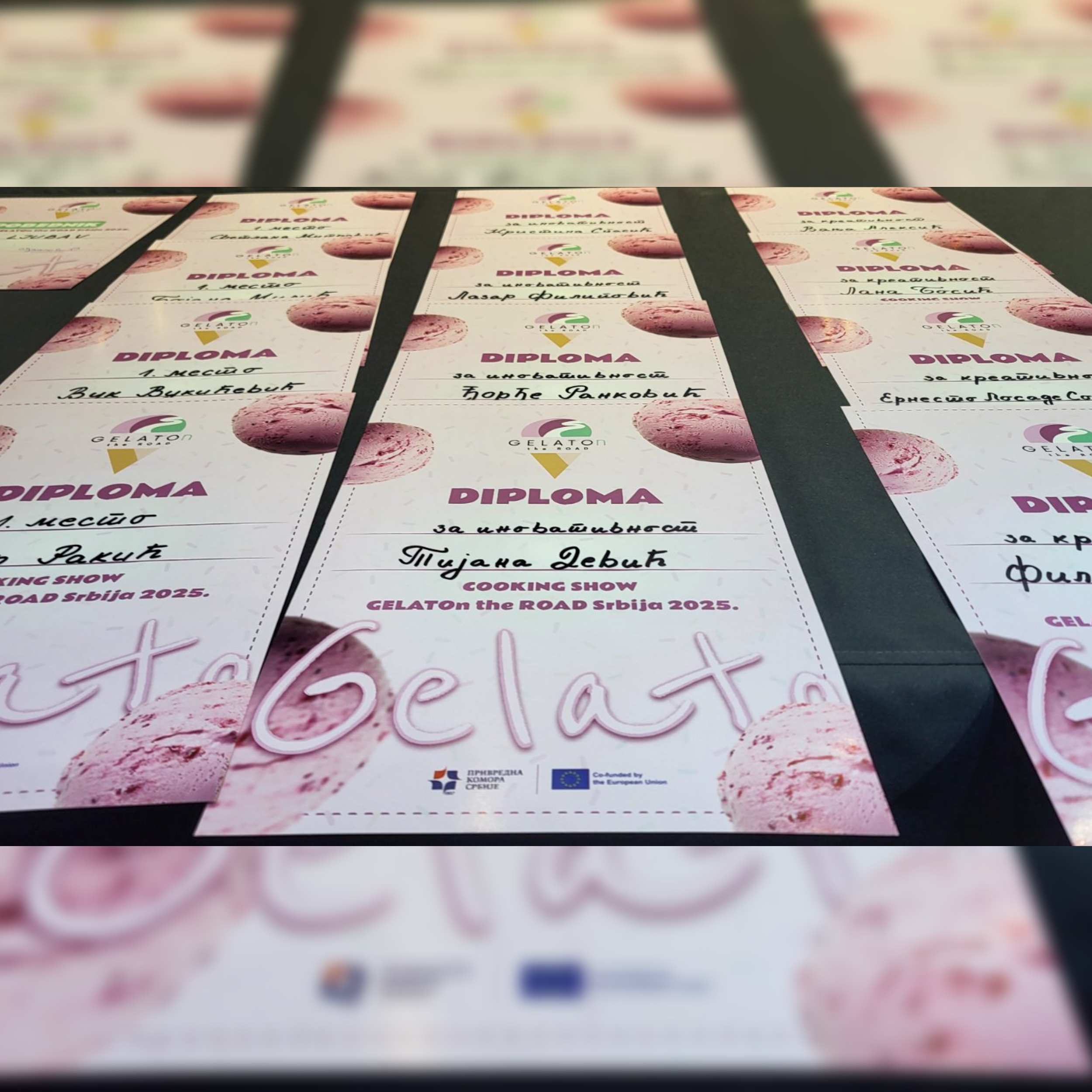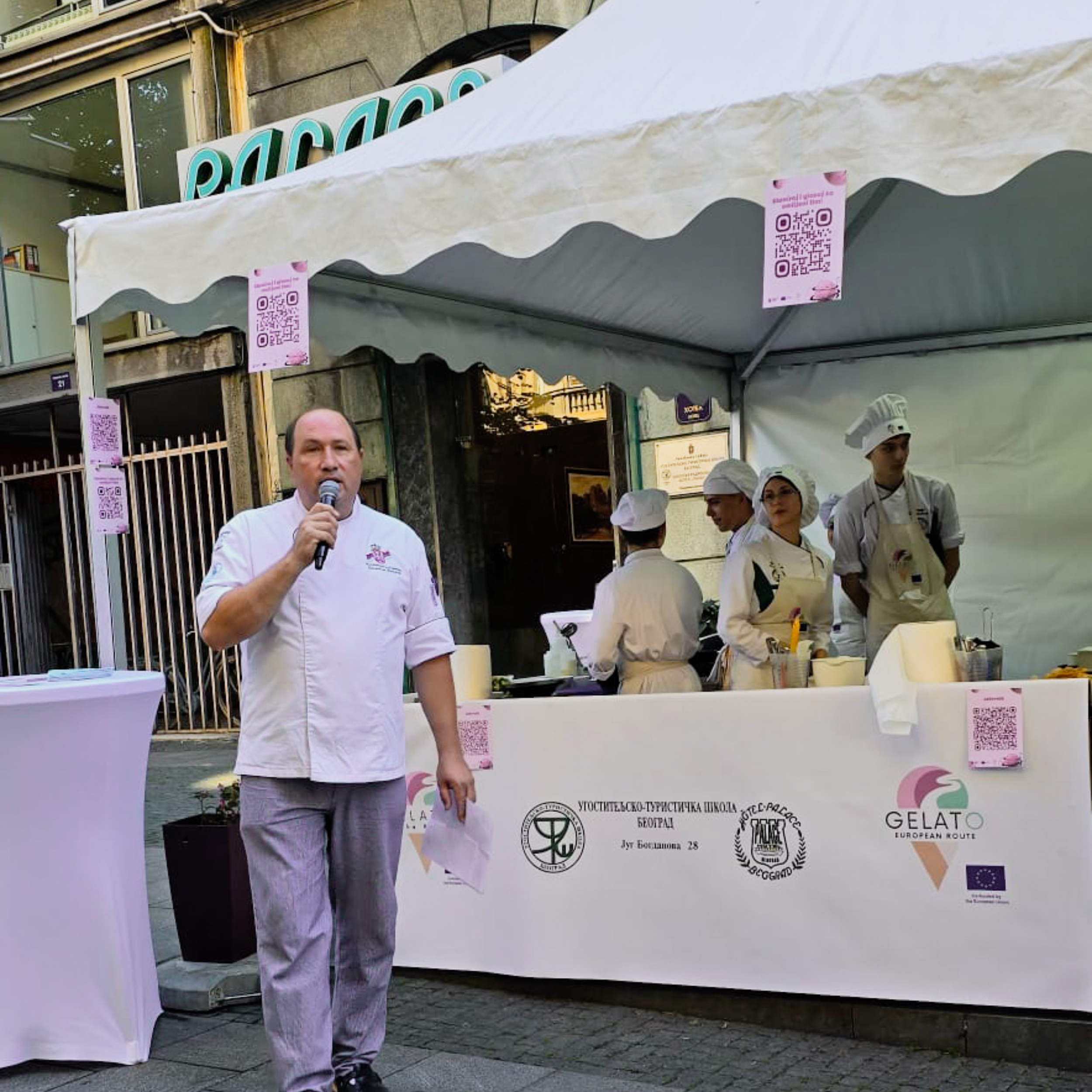 Србија се на овом путу нашла 19. и 20. септембра 2025. године када је испред школске радионице хотела Палас, у организацији Привредне коморе Београда и Угоститељско-туристичке школе као спољног партнера одржано такмичење за најбољи укус сладоледа у оквиру пројекта Gelato on the Road. Активности су укључиле такмичење у прављењу занатског сладоледа, као и кулинарски шоу у оквиру кога су се надметале четири екипе ученика Угоститељско-туристичке школе. Ученици су спремали јела уз која је послужен занатски сладолед, који су такође припремили ученици наше школе.